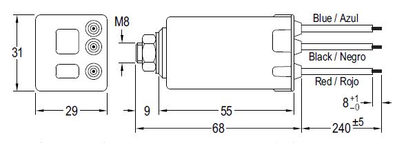 lengte 68mm inclusief 10mm M8 schroefdraad