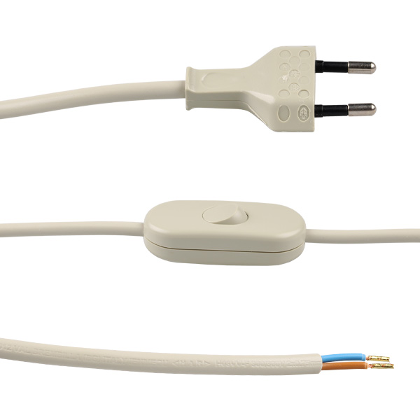 Eurosnoer met snoerschakelaar 2x0,75mm2 2,0m grijs 1,2m tussen stekker en schakelaar, 0,8m tussen schakelaar en uiteinde