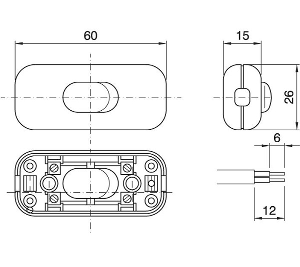 Arditi 018459 snoerschakelaar 2 polig 250V 2A maximaal goud Zonder bruggen, kabel klemt d.m.v. nokje, alleen geschikt voor platte kabel HO3VVH2-F 2x0,75mm2