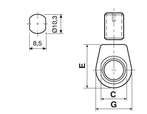 Steab trekontlasting M10x1 uitwendige schroefdraad, schroefdraadlengte 9mm met afgeplatte zijkant en inbusschroef wit
