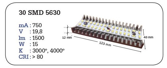 Inglass LED module 15W 840 4000K 1500lm 700mA rechthoekig met koelblok en draden 150mm