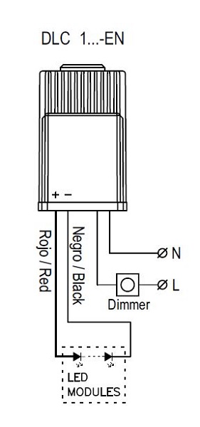 Per type LED is er een andere driver nodig. Stroom gestuurde LED's van 350, 700, 1050 en 1400mA worden in serie geschakeld. Dit gaat makkelijk met een LED verdeler. Niet gebruikte uitgangen worden met een draadje kortgesloten. Bij in bedrijf nemen eerst de draden aansluiten, dan pas spanning erop! Nooit draden losmaken onder spanning! |