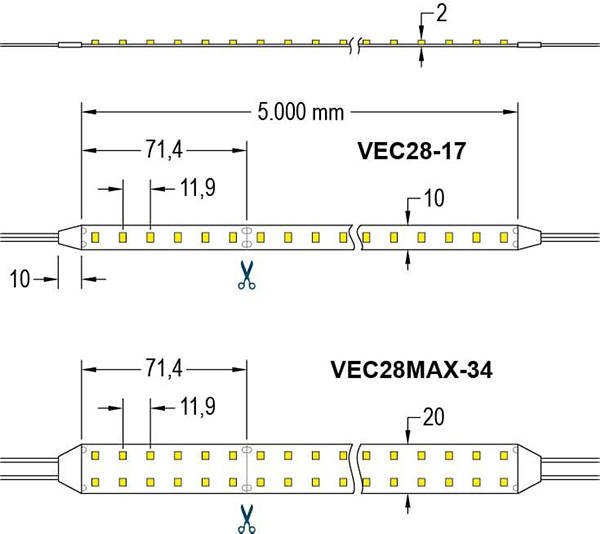 ELT 9955032 eLED VEC28MAX-34-830-24V 170W 24V DC 830 3000K 5m rol flexibele LEDstrip met 3M plakstrip IP20 op aluminium strip plakken i.v.m. koeling