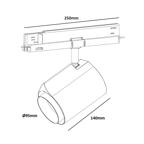 Railstraler met 3 fase universele Dali railadaptor, geïntegreerde LEDdriver en reflector 36°