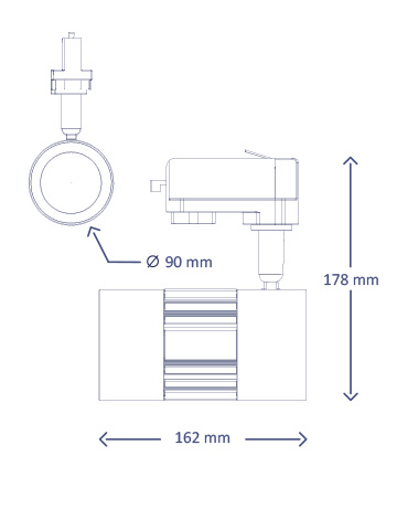 | Dimensions extérieures | Ø90mm | ? De buitenmaat is de grootste maat, vaak van de lampkop. |