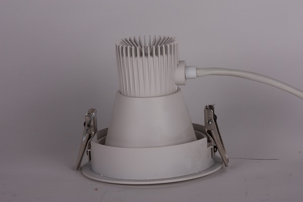 rond cardanisch inbouwarmatuur compleet met lamp, GST 3 polige koppeling tussen armatuur en elektronisch voorschakelapparaat (EVSA) en aansluitsnoer zonder stekker