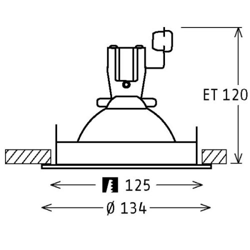 | Profondeur d'encastrement | 120mm | ? La hauteur de montage nécessaire derrière le luminaire. Un plus grand espace est souvent nécessaire en raison du développement de chaleur et de l'inclinaison du luminaire. |