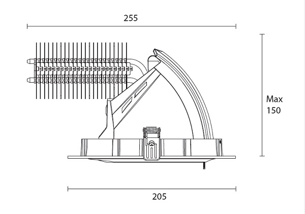 | Dimensions extérieures | Ø205mm | ? De buitenmaat is de grootste maat, vaak van de lampkop. |