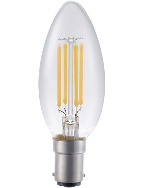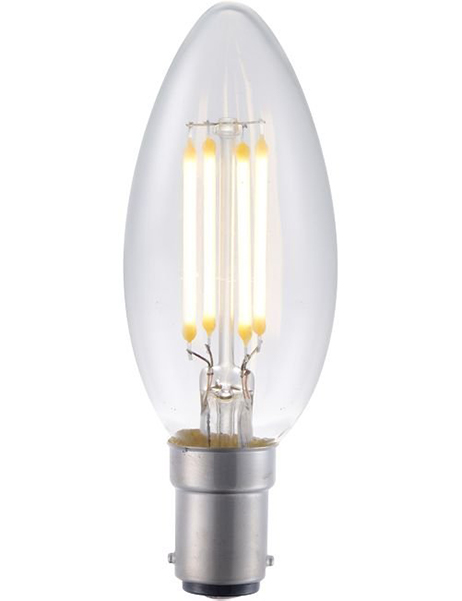 SPL filament LED kaarslamp 4W=35W Ba15d 230V 2700K kleur 827 C35 helder dimbaar