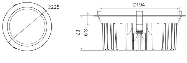 | Trou d'encastrement | Ø194mm | ? De maat van het gat om het armatuur in te kunnen bouwen. |