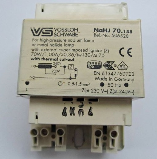 Vossloh Schwabe 506528 NaHJ 70.158 230V 240V met losse ontsteker toepassen met temperatuurschakelaar