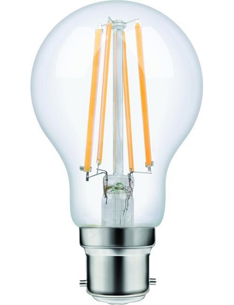 SPL filament LED normaallamp 8W Ba22d 230V 2700K kleur 827 helder dimbaar