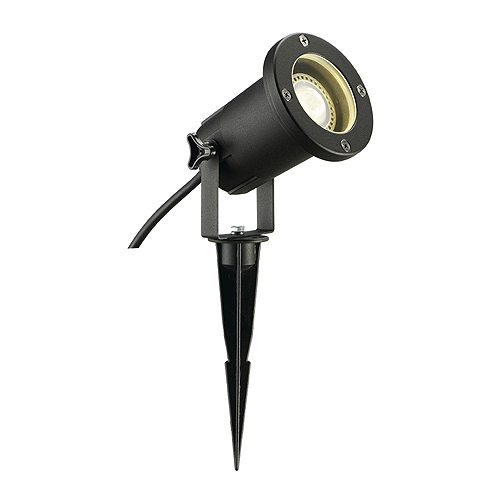 SLV 227410 Nautilus Spike XL GU10 LED of spaarlamp 83mm lengte opbouwarmatuur grondpen IP65 netsnoer 1,5m+stekker zwart