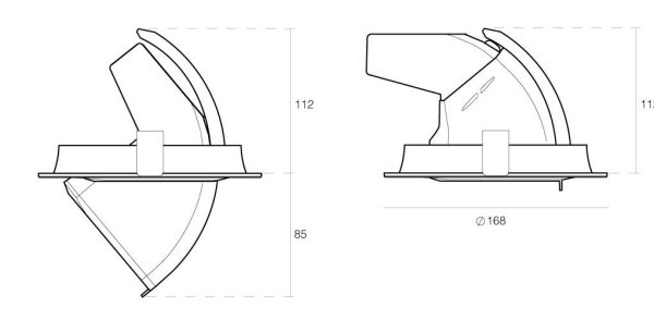 | Dimensions extérieures | Ø168mm | ? De buitenmaat is de grootste maat, vaak van de lampkop. |