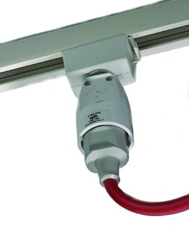 Nordic Global XTSA 67S-3 3f wcd 230V + railadaptor wit Wandcontactdoos om op spanningsrail te plaatsen, heeft geen keuzewieltje voor de fase, altijd op fase 1. Past alleen op de Nordic Global 3 fase rail.