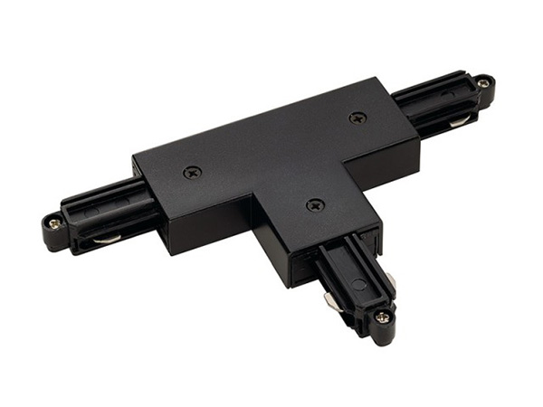 SLV 143080 1 fase opbouw spanningsrail T stuk aarde rechts met voedings mogelijkheid zwart