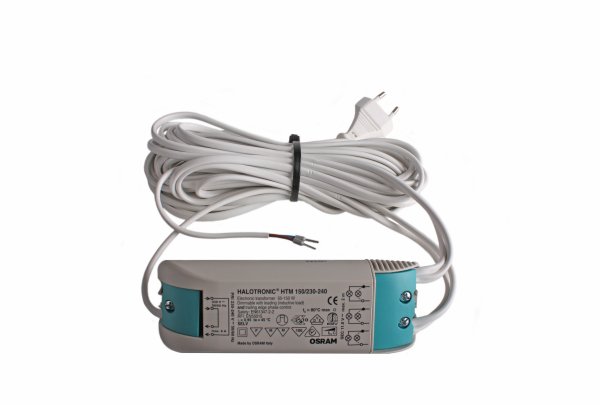 Osram Halotronic HTM 150/230-240 elektronische halogeen transformator 12V 50-150W compleet bedraad met netsnoer en 2 snoeren voor de lampen 75W